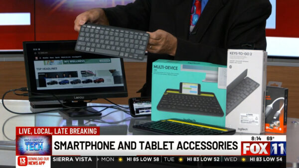 Tyler shows us how portable this keyboard can be by putting it in his jacket pocket. A little larger, the Logitech K480 has some great features and features a tray for placing the Phone or tablet. Andy also shares the LePow 15.6″ Portable Monitor and shares the J5 Create USB C to HDMI to connect your smartphone to the larger screen.